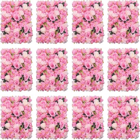 JJIESHENG Flower Wall Panels 3D Flower Wall Backdrop, 12Pcs Artificial Flower Wall Panel Silk Rose Floral Decorative Faux Flower Wall Background For