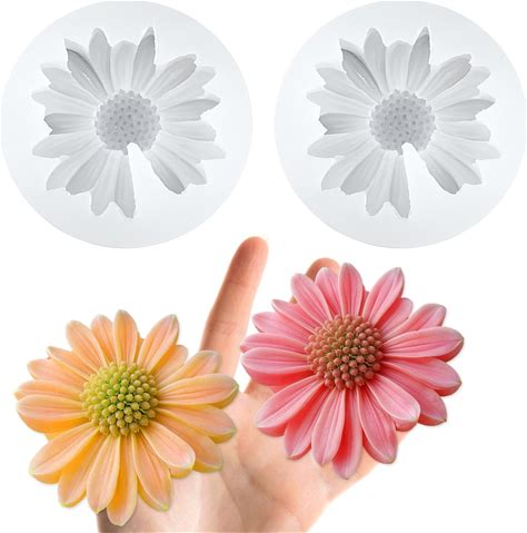 JIYIN Daisy Flower Silicone Mold, 2 PCS White Chrysanthemum Fondant Cake Molds Blooming 3D Flower Fondant Chocolate Candle Decoration Mold For DIY