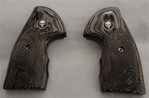 Colt Python Black Rosewood With Scrollwork And Scales Grips With Black Punisher. Premium Gun Grips. Gray/Black. Pistol Parts.