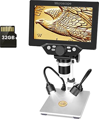 7 Inch LCD Digital USB Microscope With 32G TF Card,Micsci 1200X Magnification 12MP 1080P Handheld Camera Video Recorder,PC View,Rechargeable Battery,Fill Lights For Coins PCB Soldering Circuit Board(G1200)