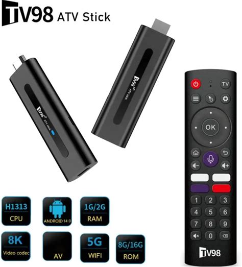TV98 ATV 8K Mini TV Stick Android 14 Allwinner H618 Quad Core Cortex A53 Support 8K 4K Wifi 6 BT 5.0