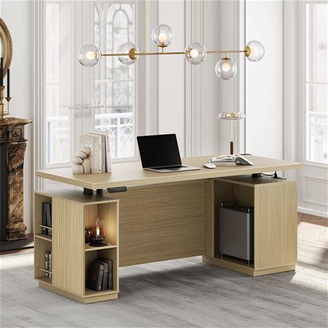 Perledesign 70" Standing Desk With Storage, Executive Electric Height Adjustable Stand Up Desk With AC/USB And Privacy Panel, Large One-Piece Destop,