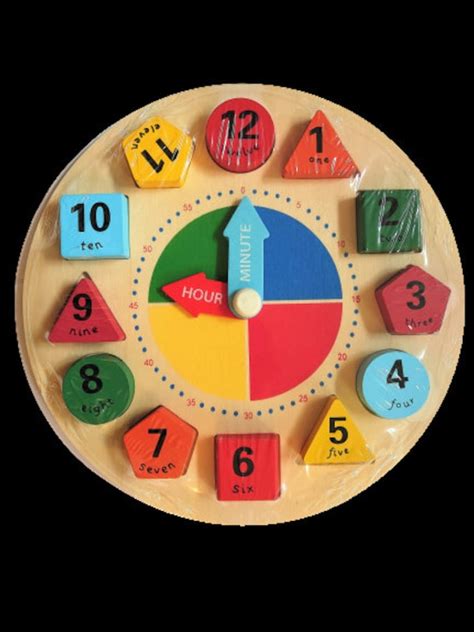 Wooden Shape Sorting Educational Learn To Tell The Time Toy Childrens Gift