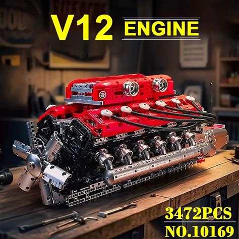 Technical Motorized Engine Series Building Blocks V8/V12/W16 Inline 4-Cylinder Simulated Engine With