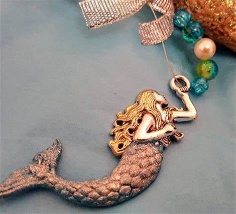 Handmade Mermaid Ornament/Miniature Tree Topper/Rear View Mirror Ornament
