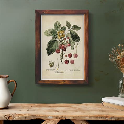 Vintage Raspberry Print: Botanical Watercolor Kitchen Wall Art Poster