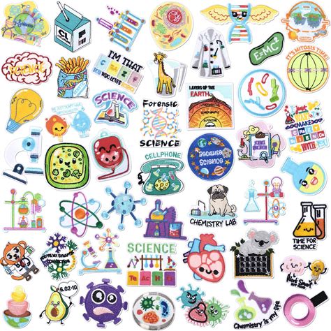 Hotop 48 Pcs Science Iron On Patches Lab Week Gifts Laboratory Embroidered Patch Cartoon Cute Physics Biology Chemistry Sew On Applique For Jeans