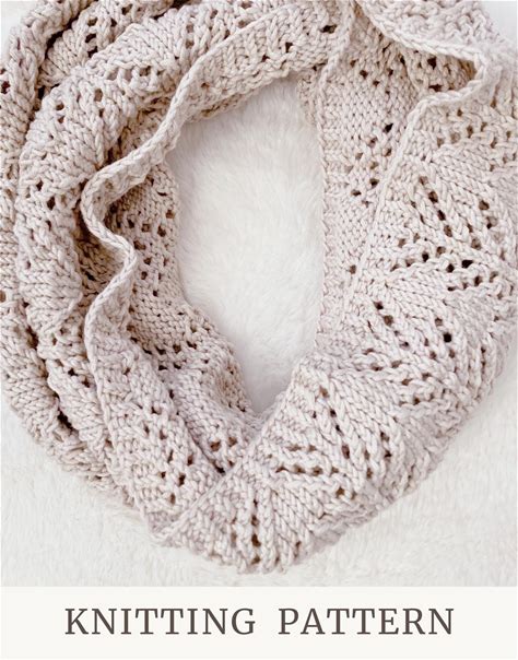 First Lace Knitting Pattern, Easy Repeating Lace Infinity Scarf, Learn Lace Knitting With Charts, DK Yarn Scarf Pattern