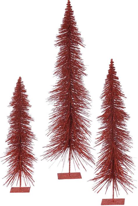 Ginnys Set Of 3 Lit Bottlebrush Trees, Green