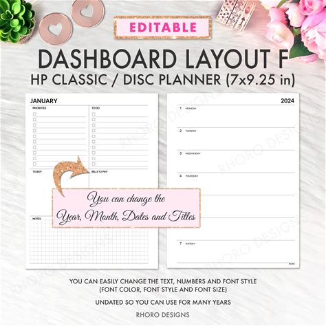 Shop weekly planner layout