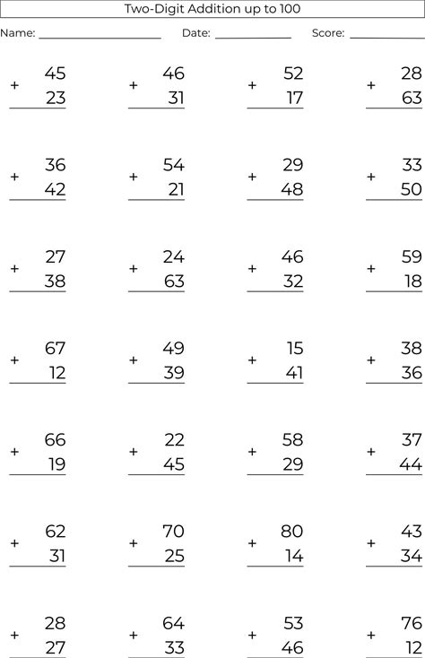 Two Digit Numbers - Sums Addition