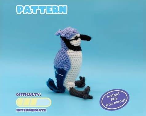 Blue Jay Sewing Pattern PDF - Backyard Bird Stuffed Ornament - Felt Plushie - Byron The Blue Jay - Instant Download