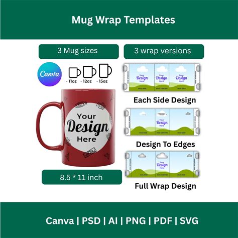 Mug Template Bundle, 11Oz 12Oz 15Oz Mug Wrap Template, Sublimation Template Mug, Cup Template, Mug Wrap Png, Mug Labels, Drag And Drop Canva