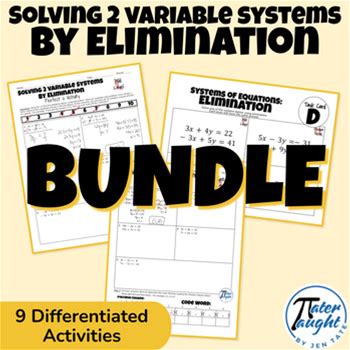 Solving Systems Of Equations By Elimination - High School Math Activity BUNDLE