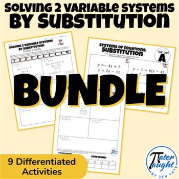 Solving Systems Of Equations By Substitution - High School Math Activity BUNDLE