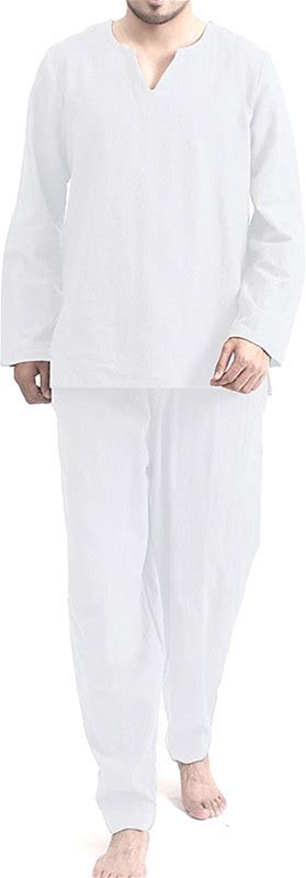 Men's Pajamas Sleepwear Pajama Top And Pant 2 Pieces Pure Color Casual Home Daily Cotton Blend Breathable Crew Neck Long Sleeve Pant Summer Spring White Khaki
