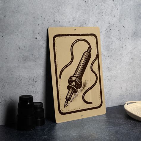 Pyrography Woodburning Pen Metal Sign - Vintage Stamp Style Art, Rustic Workshop Decor, Burner Tool Wall Sign