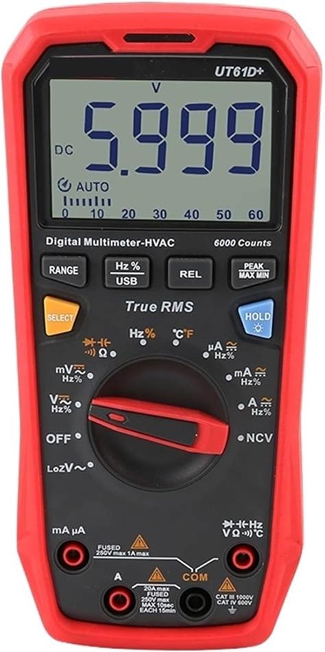 Uei DL489 Digital Clamp Meter HVAC Amp Meter True RMS Multimeter Auto-Ranging 6000 Counts Voltage Tester, Measures Inrush AC/DC Current Voltage Temperature Capacitance Resistance Diodes Frequency NCV