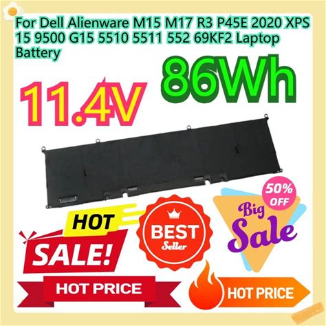 For Dell Alienware M15 M17 R3/R4/R5/R6/R7 XPS 15-9500/9510/9520 69KF2 Laptop Batteries G15 5510/5511