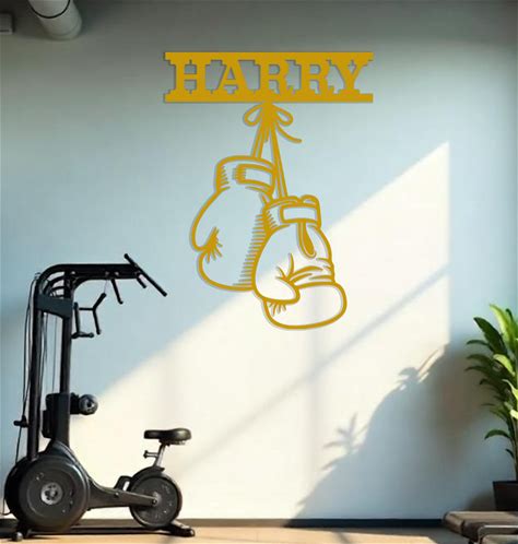 Apex Metal Signs Boxing Gloves Name Sign, 16" / Gold