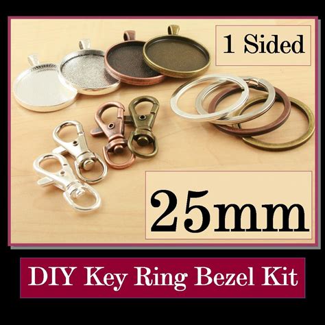 10 Key Ring Making DIY Kit. 25mm Split Ring, 10 Standard Swivel Clips, 1 Sided 25mm Pendant. Optional Glass (10), Seals (10 Or 20)