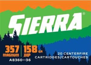 Sierra Bullets Outdoor Master .357 Magnum 158Grain Jacketed Hollow Point Brass Cased Pistol Ammo, 20 Rounds, A8360-36