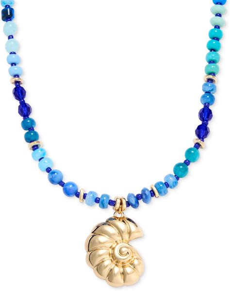 On 34th Beaded Shell Pendant Necklace, 16" + 2" Extender, Macy's Exclusive - Blue