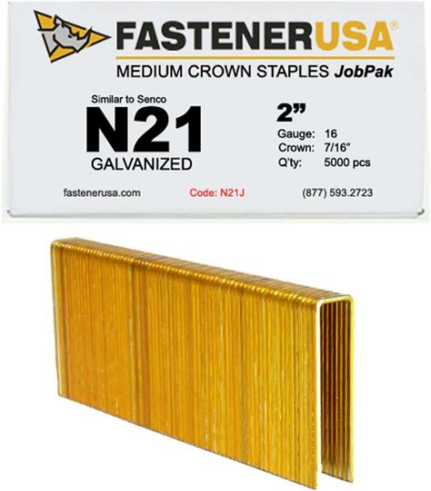 2" Leg X 7/16" Crown 16GA GALV N21 Staples 5,000Ct