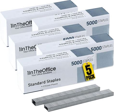 1Intheoffice Standard Staples - 1/4" Leg Length, 5,000 Staples/Pack, 5 Pack