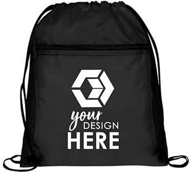 Personalized Mesh Pocket Drawstring Bag - Qty: 50 - Black