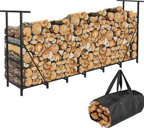 HONEST OUTFITTERS 8ft Firewood Rack Outdoor, Adjustable Heavy Duty Firewood Holder, Adjustable Wood Racks For Outdoor Indoor, Metal Log Racks For