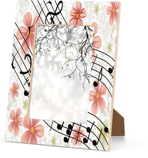FIXIXI Musical Music Note 4X6 Picture Frame For Table Top Display And Wall Mounting, Floral Pattern 4X6 Wooden Photo Frames For Home Wedding Office