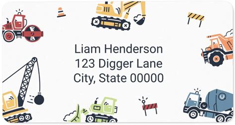 Colorful Construction Truck Return Address Label