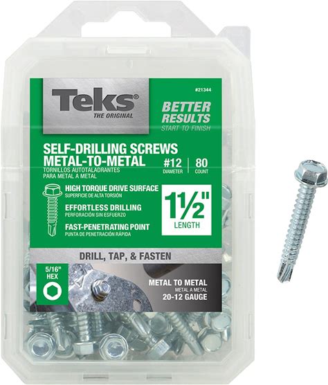 Teks No. 12 in. X 1-1/2 in. L Hex Hex Washer Head Sheet Metal Screws 80 Pk