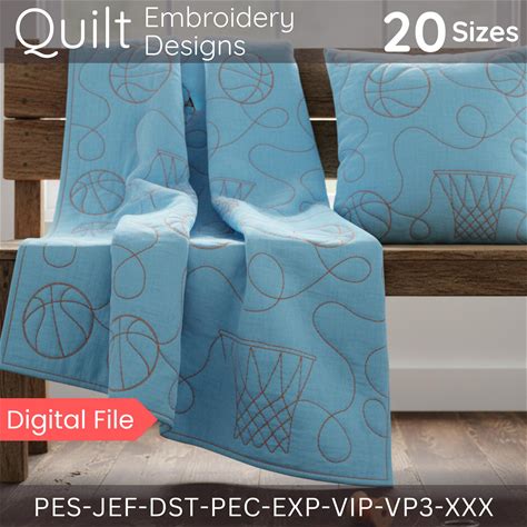 Basketball Quilt Embroidery Design: Sports Blanket Pattern (Digital Download)