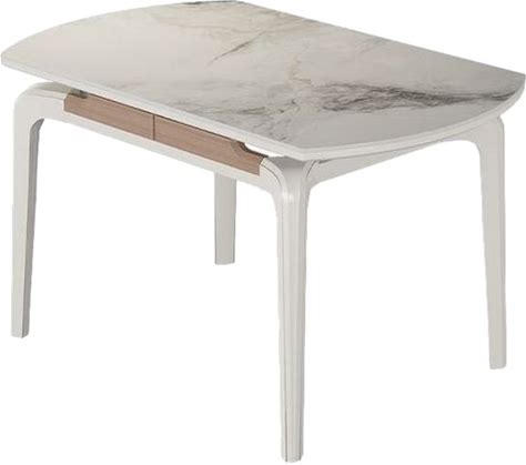 Round White Glass Dining Table With Extension And Self-Storing Leaf - 47.2"L X 47.2"W X 29.9"H Table Only