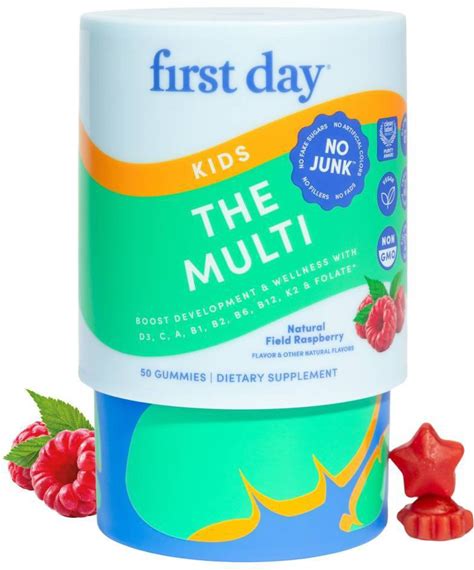 First Day Kids' The Multi Gummies For Development And Wellness With Superfoods + Multivitamins - Field Raspberry - 50Ct