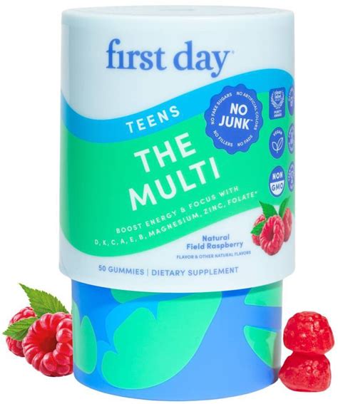 First Day Teens' The Multi Gummies For Development And Wellness With Superfoods + Multivitamins - Field Raspberry - 50Ct