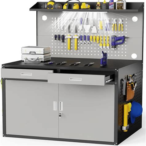48" Work Bench,Heavy Duty 2200 LBS Capacity Workbench With Drawers And Storage,Work Table With Light