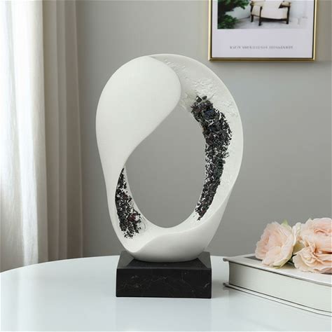 White Resin & Dark Textured Inlay Abstract Oval Sculpture